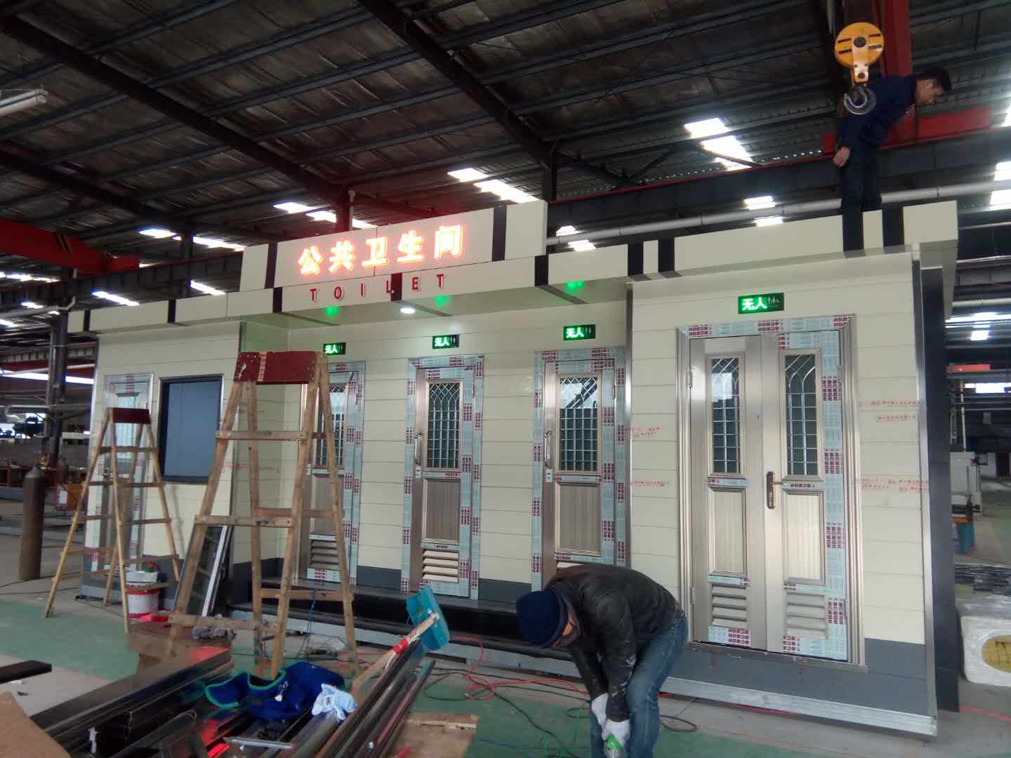 1、房體結構: 采用輕鋼龍骨結構,鋼材全部使用國家標準鍍鋅鋼材。根據房體的大小特選用國標方管(50-100)焊接而成。鍍鋅管厚度為2.8mm,方管經過除銹后進行鍍鋅、防腐處理。這樣就會延長廁所使用壽命。