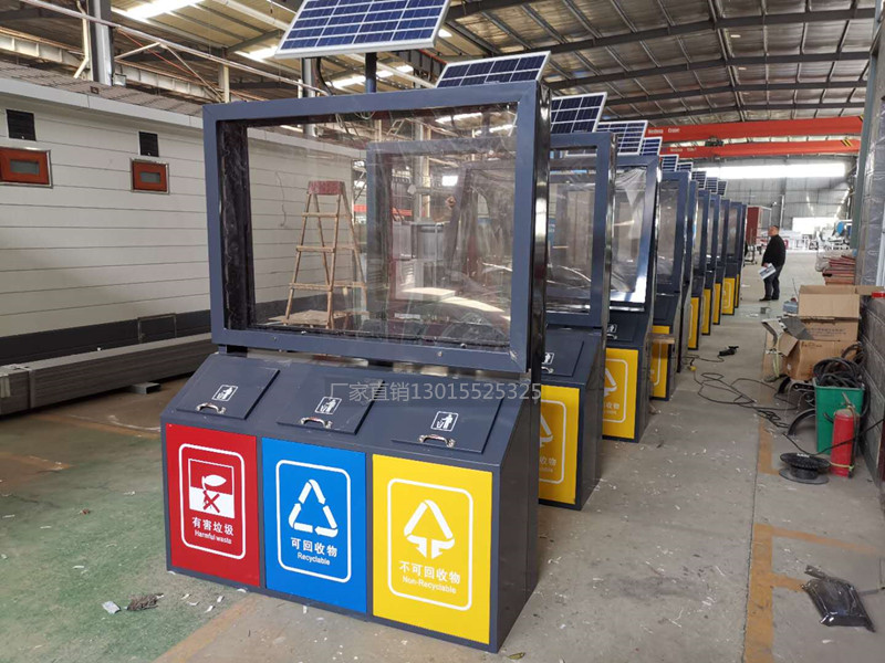 太陽能式廣告垃圾箱目前是市場上銷量最大的、廣告效益是最好的、畫面尺寸最大的一款廣告傳媒垃圾箱。